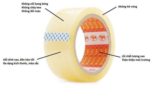 Băng dính trong có cấu tạo màng film BOPP trong suốt kết hợp cùng lớp keo không màu. Loại Băng dính này giúp dễ dàng quan sát bề mặt được dán kể cả sau khi đã dán.